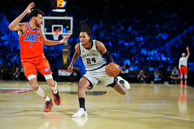 在此前的一场NBA杯西部决赛中,圣安东尼奥马刺经过苦战后以111比109险胜了主场作战的俄克拉荷马城雷霆,顺利挺进NBA杯决赛。接下来他们将会与战胜了奥兰多魔术的纽约尼克斯争夺NBA杯冠军,而雷霆则是遭遇淘汰。本场比赛后,拿下了3连胜的马刺的战绩提升到了18胜7负,排名也是攀升到了西部第4位;而结束了16连胜的雷霆的战绩则是下滑到了24胜2负,排名继续稳居西部榜首位置。